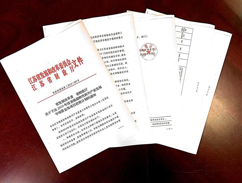近日,公司收到江苏省发改委、省财政厅《关于下达2019年度省级战略性新兴产业发展专项资金及项目投资计划的通知》(苏...